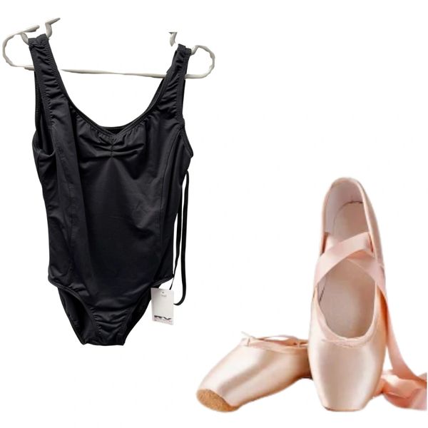 Pink leather or satin ballet shoes with elastics for class & exams